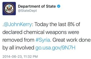 Seit Jahren wurden diese Fragen nicht beantwortet. Eine naive Haltung des ehemaligen US-Außenministers John F. Kerry, der im Jahr 2014 behauptete, dass alle Chemiewaffen aus Syrien entfernt wurden, tat ihr übriges: