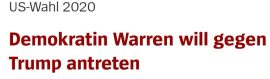 Von unvorhergesehenen Ereignissen abgesehen, erinnert sei an den Tod des Sohnes von Joe Biden, der Vizepräsident sah daraufhin von einer Kandidatur im Jahr 2016 ab, wird Elizabeth Warren in den demokratischen Vorwahlkampf zur US-Präsidentschaftswahl 2020 einsteigen. Eine offizielle Verlautbarung ihrer Kandidatur steht jedoch noch aus.