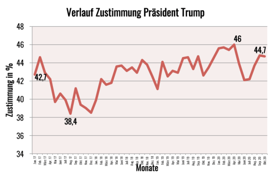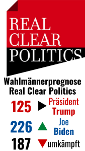 US-amerikanische Politik (Pfeil nach oben/unten: Wert ist zum Vormonat gestiegen/hat abgenommen). Quellen, falls nicht anders angegeben, sind die RCP-Durchschnittswerte.