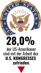 US-amerikanische Politik (Pfeil nach oben/unten: Wert ist zum Vormonat gestiegen/hat abgenommen). Quellen, falls nicht anders angegeben, sind die RCP-Durchschnittswerte.