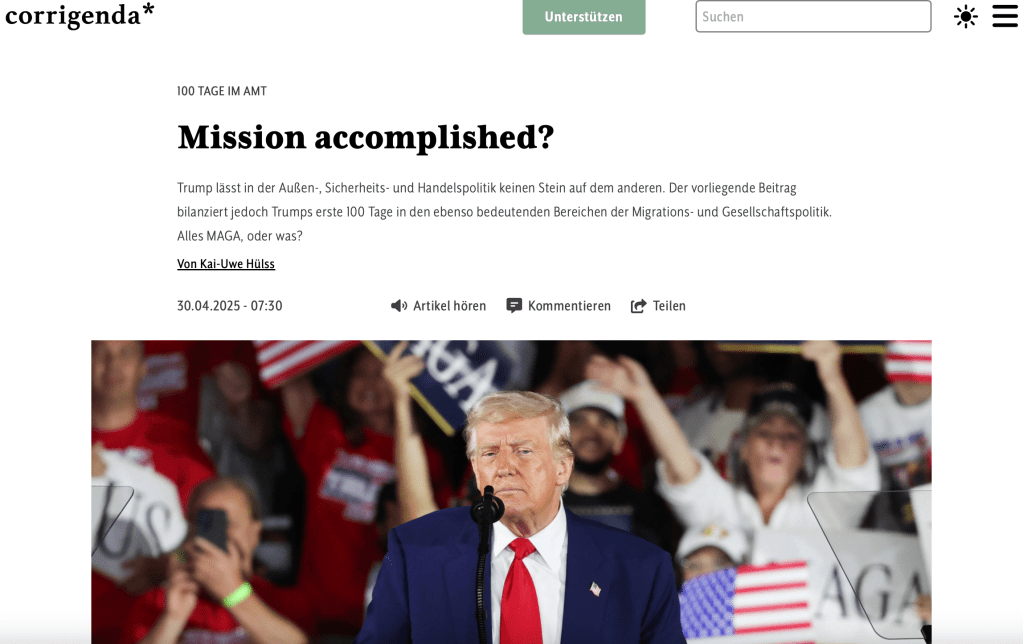 Vor 100 Tagen wurde Donald Trumpals 47. Präsident der Vereinigen Staaten von Amerika vereidigt. Seitdem hat Präsident Trump bereits so viele Präsidialerlässe in einem Jahr unterzeichnet wie kein anderer Präsident seit Harry S. Truman 1945. Dies unterstreicht, dass der MAGA-Republikaner einerseits im Gegensatz zu seinem ersten Aufenthalt im Weißen Haus besser auf die Übernahme der Regierungsgeschäfte vorbereitet war sowie zeigt es andererseits die klare Intention einen grundlegenden Wandel in der US-Politik herbeiführen zu wollen. In einem ausführlichen Beitrag für Corrigenda bilanziert der Inhaber von „1600 Pennsylvania“ die ersten 100 Tage der zweiten Amtszeit von Präsident Trump.