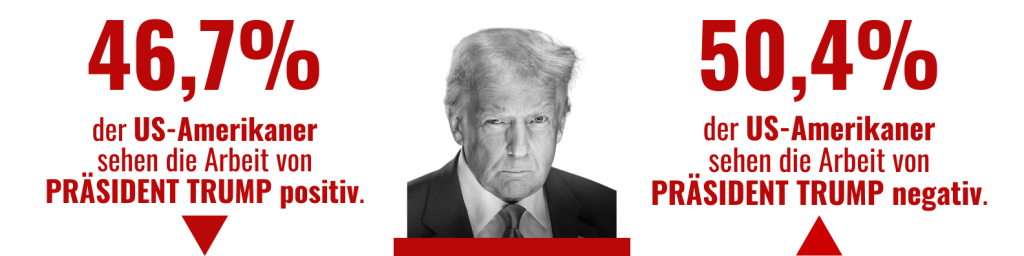 „1600 Pennsylvania“ informiert über die aktuellsten repräsentativen Umfragen rund um US-amerikanische Politik (Pfeil nach oben/unten: Wert ist zum Vormonat gestiegen/hat abgenommen). Quellen, falls nicht anders angegeben, sind die auf Real Clear Politics veröffentlichten Durchschnittswerte der wichtigsten Umfrageinstitute.