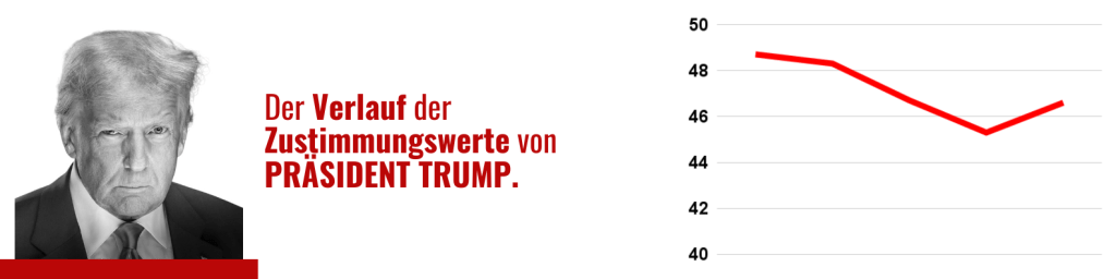 US-amerikanische Politik (Pfeil nach oben/unten: Wert ist zum Vormonat gestiegen/hat abgenommen). Quellen, falls nicht anders angegeben, sind die auf Real Clear Politics veröffentlichten Durchschnittswerte der wichtigsten Umfrageinstitute.