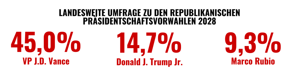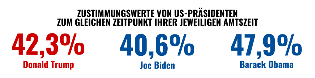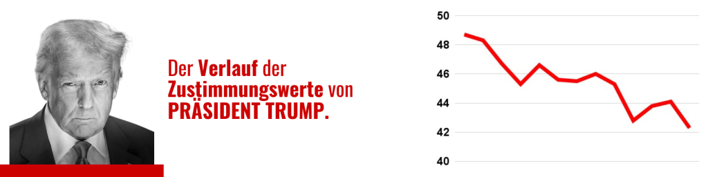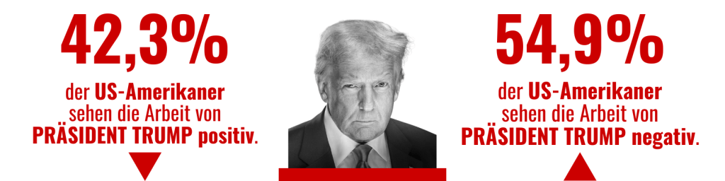 US-amerikanische Politik (Pfeil nach oben/unten: Wert ist zum Vormonat gestiegen/hat abgenommen). Quellen, falls nicht anders angegeben, sind die auf Real Clear Politics veröffentlichten Durchschnittswerte der wichtigsten Umfrageinstitute.