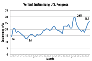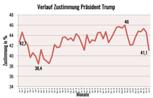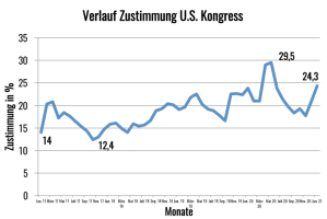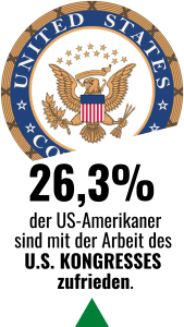 US-amerikanische Politik (Pfeil nach oben/unten: Wert ist zum Vormonat gestiegen/hat abgenommen). Quellen, falls nicht anders angegeben, sind die RCP-Durchschnittswerte.