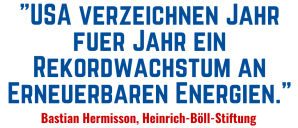 Die USA verzeichnen trotz der rückwärtsgewandten Politik der Bundesregierung Jahr für Jahr ein Rekordwachstum an Erneuerbaren Energien und haben zu Beginn der Trump-Zeit sogar ihre CO2-Emissionen reduziert. Investitionen in Erneuerbare Energien sind heute bereits kostengünstiger als fossile Alternativen, weshalb auch alleine aufgrund der Logik des Marktes in diese investiert wird. Das gilt übrigens keineswegs nur in Bundesstaaten, welche von Demokraten regiert werden, sondern betrifft Texas oder Utah ebenso wie Kalifornien oder New York.