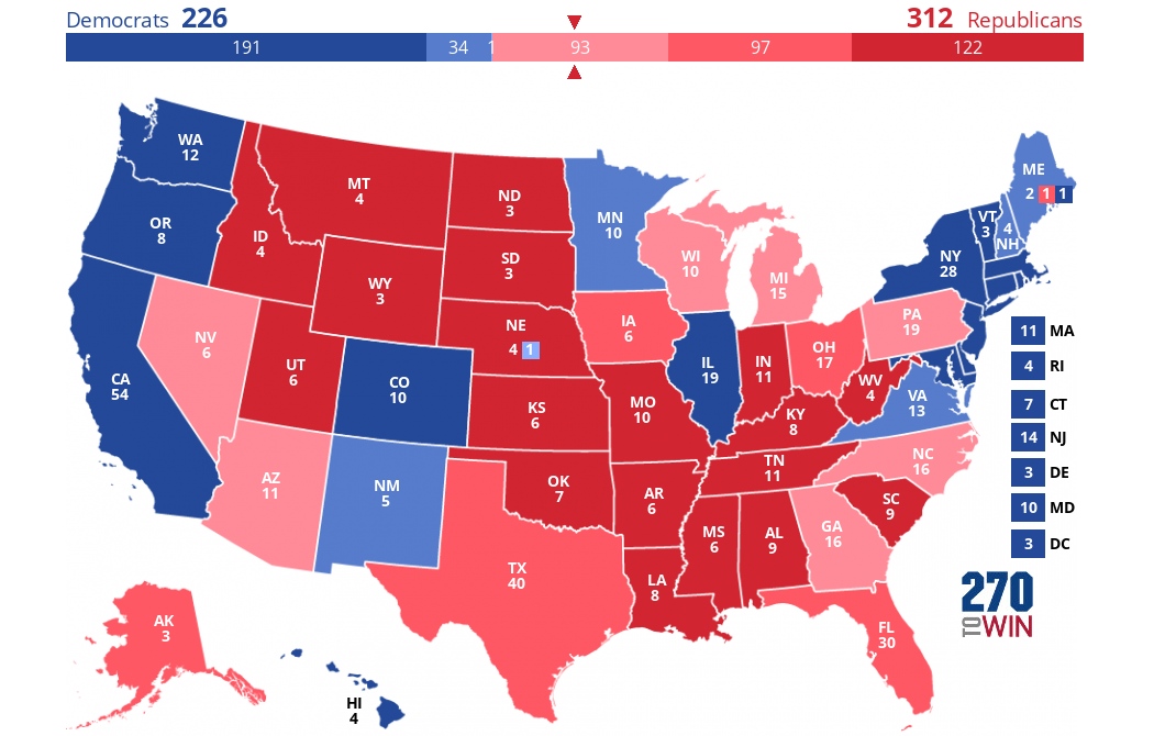 | Donald Trump (R) | 47,5% | 312 |