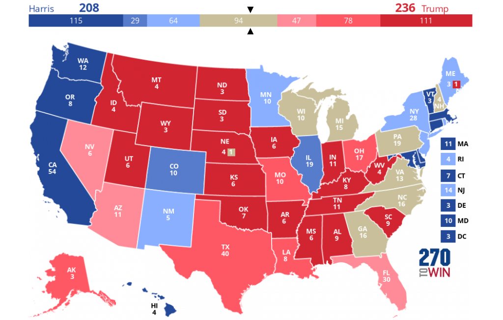 Wahlmännerprognose* (270 für Wahlsieg nötig)