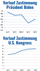 Normalerweise steigen Umfragewerte für Präsidenten nach dem Ausscheiden aus ihrem Amt an. Nicht so bei Trump. Laut einer Nachwahlumfrage des National Election Pool sehen 39 Prozent der US-Amerikaner Trump positiv und 58 Prozent negativ. Werte, die sich nicht stark von Präsident Joe Biden unterscheiden. Bemerkenswert ist jedoch, dass Trump innerhalb der eigenen Anhängerschaft an Zustimmung eingebüßt hat.