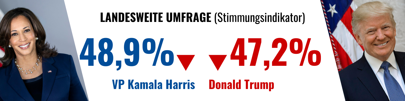 US-amerikanische Politik (Pfeil nach oben/unten: Wert ist zum Vormonat gestiegen/hat abgenommen). Quellen, falls nicht anders angegeben, sind die auf Real Clear Politics veröffentlichten Durchschnittswerte der wichtigsten Umfrageinstitute.
